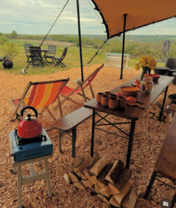 Down a short path, you’ll find a beautiful natural lake for wild swimming. Jump in for a quick dip between sauna sessions, or swim in the refreshing water while gazing out onto countryside.